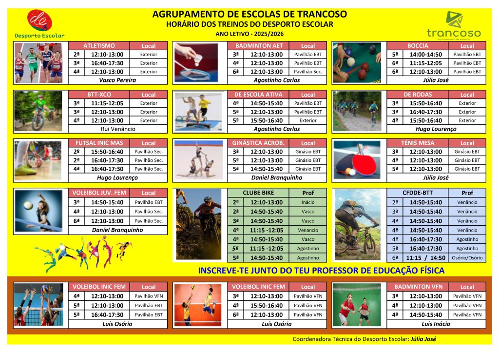 ATLETISMO | BADMINTON | DESPORTOS ADAPTADOS | BTT-XCO | DESPORTOS GÍMNICOS | FUTSAL | TÉNIS DE MESA | VOLEIBOL